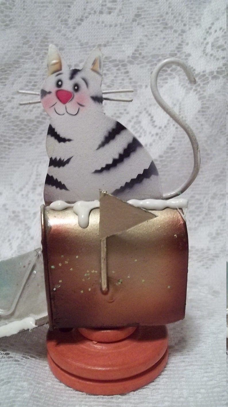 White Kitty Cat Kitten Black Stripes Mailbox Metal Figurine Ooak Wooden Tinker Toy Base Collectibles Figurines Knick Knacks Lifepharmafze Com
